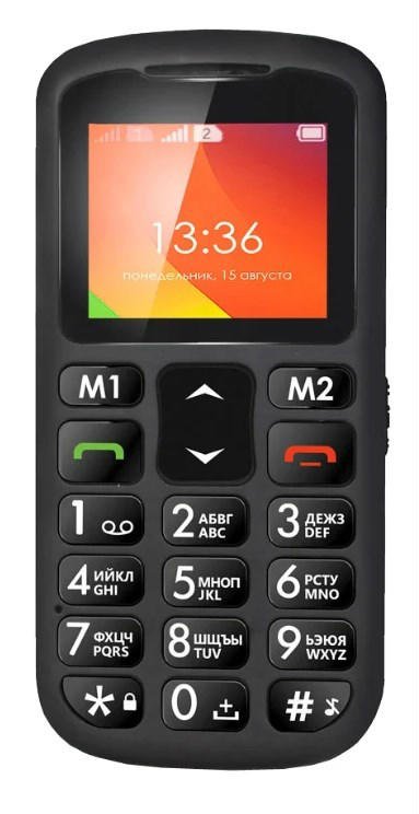 Domaći proizvođač zadovoljava korisnike dobrim modelom s izvrsnom kvalitetom izrade. Telefon je vrlo jak i starija osoba ne može brinuti da će je slomiti ako se iznenada spusti. Osim toga, uređaj zadovoljava ugodnim dizajnom, koji će, naravno, cijeniti progresivne starce. Postoje dva gumba koja se mogu programirati za brzi poziv određenom pretplatniku. Ovdje, tradicionalno, velike tipke s dobrim fontom za biranje.Izbornik je također predstavljen velikim, intuitivnim ikonama.