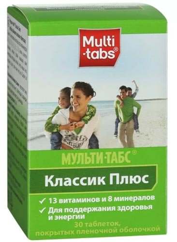 Poznati brand s pedesetogodišnjom povijesti nudi klasičan dodatak prehrani sa sadržajem od 13 vitamina i 8 minerala za žene i muškarce. U Rusiji je tvrtka na trećem mjestu među aditivima u 2016. godini. Multi-tabs osigurava zadovoljenje potrebnih potreba oslabljenog, posebno u proljeće, organizma. Kvaliteta proizvoda upućuje na činjenicu da je dopušten dodatak prehrani tijekom trudnoće i dojenja (nakon savjetovanja s liječnikom).