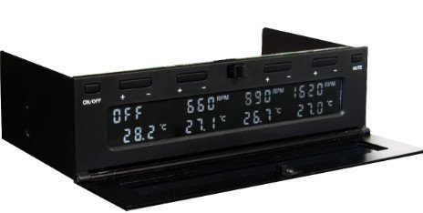 Dobra četverokanalna reobaza za sklopove srednjeg dijela i uredska rješenja. Na njemu nema gumba, kontrola se provodi u potpunosti kroz zaslon. Kao analogni, koriste se digitalni "+" i "-" manipulatori. Gornji dio prikazuje informacije o broju okretaja. Donji dio je odgovoran za termičke senzore.