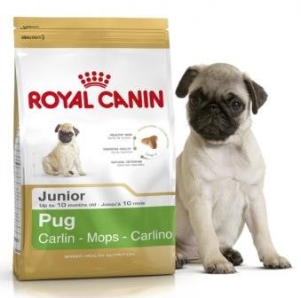 Royal Canin Pug Junior - najbolja hrana za štence pasmine Mops u dobi od 10 mjeseci. Puna formula sadrži dehidrirane životinjske proteine, rižu i kukuruz. Suha hrana obogaćena je prehrambenim dodacima: vitaminima A (31.500 IU) i D3 (800 IU), kao i mikroelementima: željezom, jodom, bakrom i cinkom. Sadrži prirodne okuse. Bez GMO-a i konzervansa.