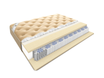 Dizajn madraca pažljivo je dizajniran, s ciljem poboljšanja udobnosti spavanja i trajnosti proizvoda. Sastoji se od nekoliko slojeva - prirodnog belgijskog lateksa, kokosovog kokosovog vlakna, šupljih silikoniziranih vlakana i opružnog bloka. Ovaj sloj ima najviše značajki - svaka neovisna opruga nalazi se u poklopcu od netkanog materijala i čvrsto zavaren u cijev, a raspored u obliku saća omogućuje povećanje gustoće punjenja. Proljetni blokovi ovog tipa služe više od 20 godina bez deformacija.
