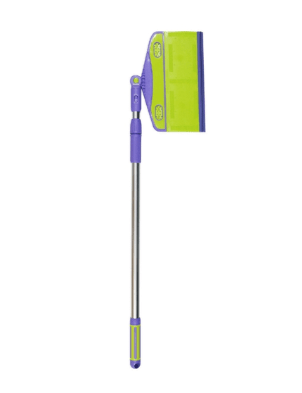Proizvođač postavlja ovu krpu kao najbolju pomoćnicu za beskontaktno čišćenje od poda do stropa. U kompletu su tri savjeta za spužvu, a zahvaljujući teleskopskoj dršci možete jednostavno podesiti željenu duljinu. Ali opis ne pokazuje ništa o sustavu vrtnje, tako da se još uvijek morate zabrljati s vodom. Glavna prednost ovog krpa je neobičan oblik mlaznice, koja zahvaljujući oštrom rubu doista može doseći najteže dijelove.