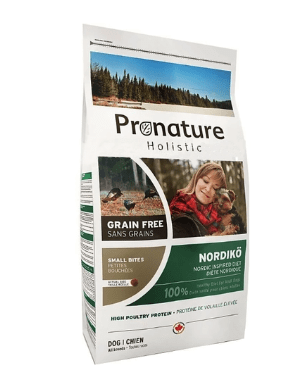 Kanadski brand ProNature vjerodostojan je uz vrlo precizan prikaz sastava i kvalitete sastojaka. Ovo je pravi holistički - najbolje što možete dati vašem ljubimcu. Psi vole male krhke granule s prirodnim okusom mesa. Glavna proteinska komponenta je piletina i puretina, slatki krumpir se koristi kao izvor ugljikohidrata. Slijedi dugi popis pomoćnih komponenti - voće, povrće, ljekovito bilje, vitamini. Prednosti uključuju prisutnost Yukka Schideeger, koja značajno smanjuje "okus" izlučevina.