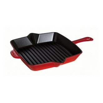 Spremnik je kvadratnog oblika (26x26 cm) sa sigurnim zaobljenim kutovima, visokim stranama, od kojih su dvije paralelne opremljene mlaznicama pogodnim za odvod masnoće. Uz metalnu dršku srednje duljine s otvorom za spremanje posuđa u suspendiranom stanju, tu je još jedan mali za lakše nošenje nije najlakši dizajn. Rebrasta površina modela dobila je pozitivne povratne informacije, budući da tost troši manje ulja i tvori prekrasan uzorak kore. Zapravo, jedina mana proizvoda je da uopće nije proračunska vrijednost.