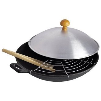 Model wok tipa dobio je pozitivne kritike ne samo zbog svoje funkcionalnosti i sigurnosti za zdravlje, nego i zbog zanimljivog paketa paketa.Pored tave, u setu se nalazi i polukružni uklonjivi roštilj promjera 37 cm izrađen od aluminija, drvenih kliješta i štapića za posluživanje istog materijala za azijska jela. Jedini nedostatak modela je drvena ručka poklopca, koja se stoga ne preporučuje za uporabu kod prerade proizvoda u pećnici.
