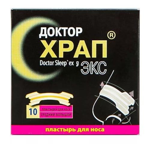 Kao dio složene terapije s glavnim lijekovima, liječnik protiv hrskanja Doctor Snore-ex daje pozitivan učinak: razina hrkanja je svedena na minimum, elastičnost tkiva mekog nepca raste, nestaje oteklina i iritacija tkiva. Jedina kontraindikacija je individualna netolerancija na sastojke. Patch je dostupan u dvije veličine: srednje i velike. Prije uporabe preporuča se konzultiranje stručnjaka.