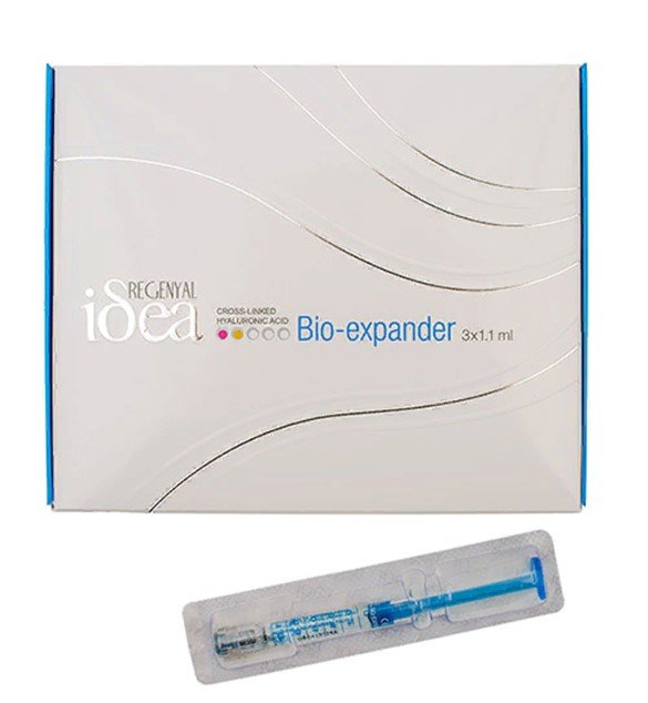 Sastav je jedinstven u svojoj vrsti, jer sadrži dvije vrste hijaluronske kiseline. Stabiliziran, u koncentraciji od 2,5%, molekulske mase od 1,00 i 2,00 milijuna Da i nestabiliziran, težine 500,00 kDa. Važno je napomenuti da nakon postupka biorevitalizacije uz primjenu ovog lijeka ne postoji period rehabilitacije, jer Regenyal Idea Bio-Expander ne ostavlja modrice, edeme i tragove papula.U pregledima se napominje da lice dobiva mladi, zdravi izgled prvog dana.