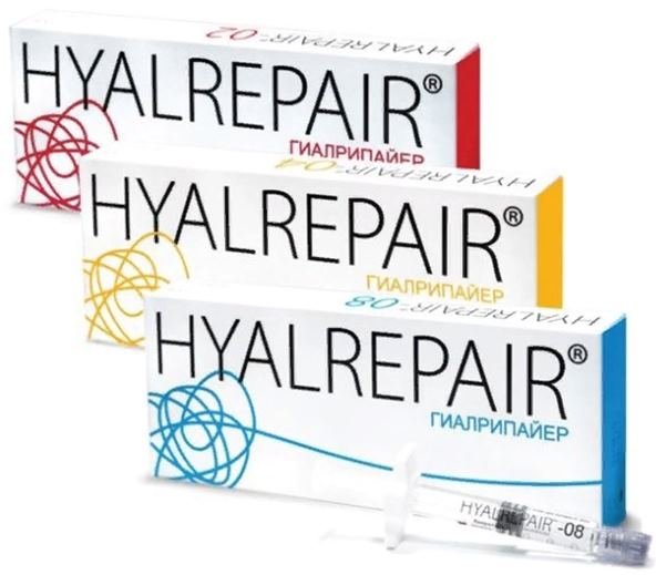 Jedinstveni biorevitalizant ruske proizvodnje Hyalrepair, koji provodi tvrtka Martinex, je serija lijekova u 3 varijacije. Hyalrepair 02 u volumenu od 1,5 ml intenzivno vlaži, čini ožiljke i pigmentaciju manje vidljivim. Sadrži hijaluronsku kiselinu (14 mg / ml), vitamin C, glicin, prolin, lizin. Najbolja opcija za žene od 30 godina.