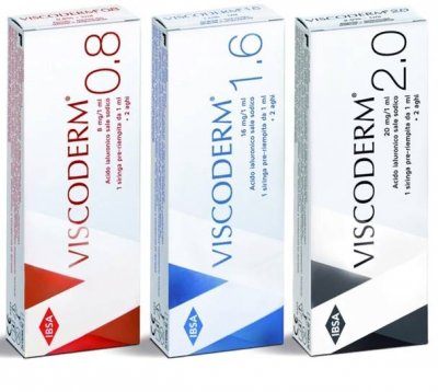 U 2008. godini prodane su 3 varijante talijanskih biovritalizatora Viscoderm: 0,8 (2 ml), 1,6 (1,5 ml), 2% (2,5 ml).Naravno, posljednje 2 varijacije lijeka su najoptimalnije za staru kožu nakon 40-50 godina. Važno je napomenuti da se Viscoderm 2, za razliku od svojih kolega u sastavu s nižim sadržajem hijaluronske kiseline, unosi u dublje slojeve kože, a ne u gornje. Za Viscoderm 2, tehnika ubrizgavanja papula nije prikladna - samo linearna.