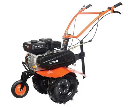 Motorni blok PATRIOT Kaluga opremljen je benzinskim agregatom od 7 l. s., zasluženo popularan kod domaćeg kupca. On može obavljati većinu poljoprivrednih radova na površini do 100 hektara. Uključujući njega i uzgoj složenog zemljišta. Širina pokrivenosti trake tla je 85 cm, a rezači mogu roniti do dubine od 32 cm.