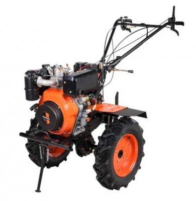 Teški motoblok ima električni starter za pokretanje i razlikuje se od modela marke visokim otporom elektrane na opterećenja. Dizelski motor može razviti do 9 litara. p., što daje uređaju sposobnost da se nosi s velikim količinama rada. Prisutnost pogonskog vratila omogućuje vam spajanje aktivnog priključka (kosilica, puhalo za snijeg, pila za ogrjev, sejalica za krumpir itd.), A pneumatski kotači i spojke omogućuju vam da koristite motoblok kao pokretačku snagu za prijevoz robe.