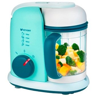 Snaga od 400 vata osigurava visokokvalitetne pire krumpire i jela s kriškama. U kompletu je i posebna posuda u kojoj se dobro čuva kuhana hrana u hladnjaku. Funkcije odmrzavanja i zagrijavanja omogućuju djeci da blagovremeno poslužuju hranu. Negativne emocije uzrokuju buku uređaja, prisutnost teško dostupnih mjesta za pranje, troškove.
