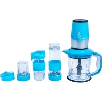 Ovaj mini uređaj svakako će privući mnoge mame za učinkovitu funkcionalnost. Može se samljeti s najboljim rezultatom kao meke bobice ili voće i led. Dva kontejnera za brušenje uključena u komplet (velika s volumenom od 1,2 litre) opremljena su vrlo izdržljivim noževima od nehrđajućeg čelika koji se mogu ukloniti, a odlikuju ih posebni S-oblik.