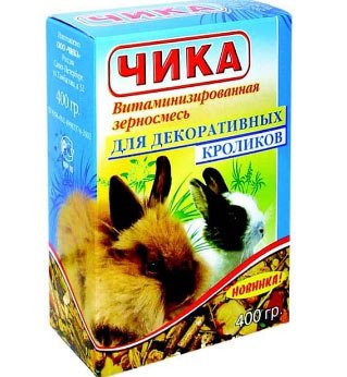 Uzgajivačima se savjetuje da dodaju omiljene proizvode ukrasnih kunićastočna hrana kao baza. Proizvođač ima panj s žitaricama, koji se savršeno kombinira s mješavinom. Iz nekog razloga, proso je obojeno u crveno i zeleno. Neki kažu da je sastav zarazna, zečevi počinju nasilno reagirati na miris hrane. Prijenos životinje na drugu hranu je težak. Ali samo da bismo otišli predaleko s dozom, što povećava rizik od pretilosti.