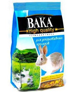 Vaca Visoka kvaliteta, prema pakiranju, izradili su stručnjaci za održavanje ukrasnih zečeva. Uzgajivači su cijenili rad profesionalaca, nazivajući ovu hranu jednom odnajbolje, Kompozicija ima komponente za održavanje zdravlja i imuniteta, stvarajući snažno potomstvo. Žitarice i probiotici doprinose apsorpciji smjese. Baziran je na granulama trave, nadopunjen omiljenim povrćem i voćem. Prehrana se smatra samodostatnom, nije potrebno obogaćivati vitaminima.