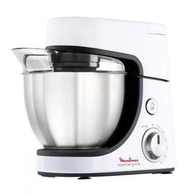 Zanimljiv model Moulinex Masterchef Gourmet QA50AD može se bez oklijevanja svrstati u kategoriju univerzalnih procesora za hranu, a proizvođač je osigurao tako velik skup funkcija. Komplet sadrži set različitih uređaja za kuhanje, od kojih je glavna, naravno, kuka za gnječenje gustog tijesta, mlaznica za premlaćivanje i know-how marke - iznimno dugačak dvostruki FLEX WHISK od nehrđajućeg čelika. Napravljena po patentiranoj tehnologiji, ovaj pribor jamči visokokvalitetno bičenje čak i male količine proizvoda, zbog čega ćete moći pripremiti jednako toliko smjese koliko vam je potrebno.Posuda stroja izrađena je od nehrđajućeg čelika, tijelo je plastično.
