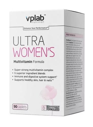 Za aktivne i atletske djevojke i žene starije od 18 godina, Vplab je stvorio kompleksnu žensku multivitaminsku formulu Ultra. Jedan od najpopularnijih vitamina, posebno dizajniran za žene. Više od 40 aktivnih sastojaka u sastavu. Kompleks se sastoji od 5 inovativnih smjesa. Namijenjeni su borbi protiv radikala, potpore zglobovima, ljepoti kose i kože, poboljšanju pamćenja. Posebno za žene u sastavu folne kiseline u količini od 400 mikrograma.Aktivno doziranje - uzimanje jedne kapsule dnevno. Kada se intenzivno opterećenje može povećati na dva, prema preporuci stručnjaka.