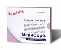 Medisorb je mala mrežica od sintetskog materijala, impregnirana voskom. Potonji ubija bakterije, sprječava ulazak mikroba, potiče zacjeljivanje rana. Zavoj upija tajnu i pretvara je u gel. Vanjski sloj je oblikovan kao gusti film za maksimalnu sterilnost. Unutarnji premaz se tretira masti, omekšavanjem oštećene kože. Zavoj ne ometa cirkulaciju zraka, doprinosi oslobađanju gnoja.Kupci govore o bezbolnoj primjeni lijekova. Prvo se odvaja prvi sloj, zatim se fiksira žbukom. Ne uzrokuje nelagodu tijekom uklanjanja. Zavoj se prikazuje pri pružanju prve pomoći za zaustavljanje krvarenja.