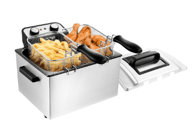 Izvrstan model za kuću u tim slučajevima, ako je priprema krumpira i drugih prženih jela potrebna samo s vremena na vrijeme. Friteza je vrlo kompaktna, potrošnja ulja je samo 1 litra, a istovremeno možete pržiti i do 600 grama krumpira. Tijelo je izrađeno od nehrđajućeg čelika, nalazi se prozor za pregled spremnosti posude. Kompaktne dimenzije uklanjaju probleme pri skladištenju, a protuklizna stopala povećavaju operativnu sigurnost.