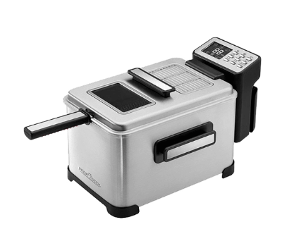 Dosta skupo, ali vrlo zgodan, jednostavan za upravljanje i funkcionalan model. Volumen je namijenjen za četiri litre ulja, u jednom potezu možete pržiti do kilograma krumpira. Kontrola je čista, elektronska, temperatura ulja može se regulirati unutar 140-190 ° C. Proizvođač je osigurao 6 različitih načina prženja kako bi dobio najbolji okus gotovih jela. Filtar protiv mirisa sprječava paljenje u kuhinji, a pomična posuda olakšava čišćenje aparata nakon kuhanja. Na zaslonu se prikazuju svi trenutni parametri rada, a kada se aktivira tajmer, oglašava se zvučni signal.