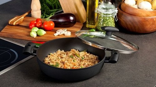 Dodatno, unutar pribora prekriva se sloj Teflon Classic koji se ne lijepi, što cijeni i početničke hostese i iskusne. Zbog prisutnosti silikonskih olovaka koje se ne zagrijavaju, lako možete kontrolirati spremnost posude. Jedini nedostatak dizajna je da uopće nije trošak proračuna.