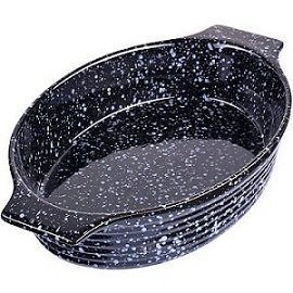 To je jedan od najsvestranijih dizajna, odlikuje ga okrugli oblik koji, zajedno s laganim ručkama, ima dimenzije od 24,3 x 18,8 cm, pri čemu treba obratiti pozornost na visinu bočnih koljena od 6,3 cm, što je dovoljno za pečenje velikih slastica. Glatka površina kućišta ravnomjerno se zagrijava. Kapacitet se može koristiti za smještaj ne samo u mikrovalnoj pećnici, već i u pećnici. Usluga u perilici posuđa je dopuštena. Minus dizajn - bijeli ukrasni sloj u unutrašnjosti, koji u nedostatku non-stick premaza zahtijeva posebnu pozornost tijekom njege.