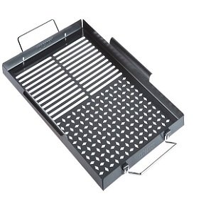 Ovaj jeftin uređaj je učinkovit kada pripremate hranu za veliku obitelj ili grupu prijatelja. Njegova se posebnost sastoji u odvajanju površine čeličnog lima dimenzija 43x32 cm u dvije zone, od kojih svaka ima perforaciju nejednakog oblika. Stoga se na čvrstoj čeličnoj konstrukciji istovremeno peku razna jela - veliki odresci i sjeckano povrće. Štoviše, nakon prženja na gotovim proizvodima, pojavljuje se uzorak karakterističan za konfiguraciju donje rupe - pruge ili rešetke.