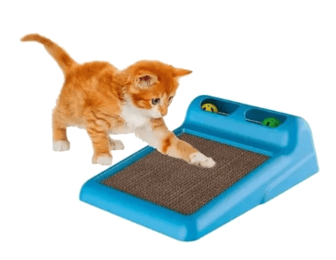 Jedan od najboljih modela koji kombinira strugač i prostor za igru. Model je izrađen od plastike i tekstila. Gruba površina savršena je za oštrenje kandži, tako da mačke brzo zaustavljaju kaučeve, tepihe i tapete. Da bi zabavili kućnog ljubimca, na vrhu strugača nalaze se dvije kuglice koje se kreću uzduž šipke, stvarajući primamljiv zvuk. Takav čekić će se svidjeti ne samo odraslima, nego i mačićima.