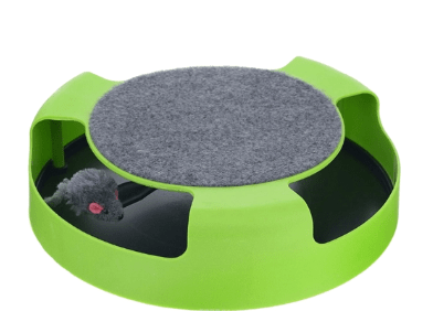 Vrlo originalan, neobičan model kandže, zahvaljujući kojem mačka ne samo da može izoštriti kandže, već i loviti miša. Model je kompaktna konstrukcija od plastike, čija je gornja površina prekrivena posebnim materijalom za točku kandži. Unutar, na posebnoj platformi, nalazi se miš, koji mačka može voziti šapom u krugu.