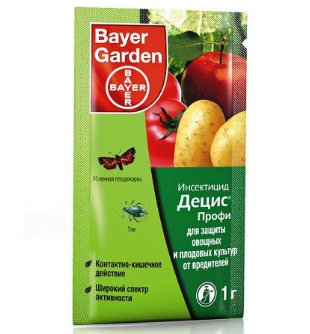 Decis Profi dodiruje lišće drveća i biljaka, pada na lisnu ušu i brzo ga ubija. Kemijski spojevi narušavaju živčani sustav insekata, ne mogu se kretati i hraniti. Lijek odgađa štetnike dugo vremena. Smatra se najsigurnijim za ljude, životinje i biljke. Formula se ne nakuplja u tlu, ne utječe na povrće i voće. Također je pogodan za prevenciju, tako da lisna uši ne polaže jaja.