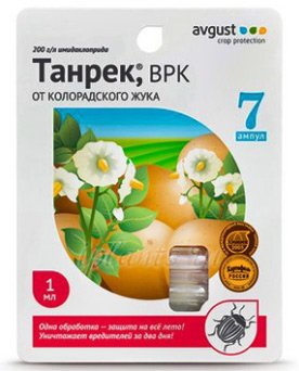 Tanrek djeluje protiv odraslih vaši i ličinki. Pokazuje se kada FOS i piretroidi ne pomažu. Sredstva štite tretirane biljke nekoliko tjedana. Ne boji se visokih temperatura, kiše. Najbolji rezultati dobiveni su na jabukama, ružama i cvjetnim usjevima, ribizama, rajčicama i krastavcima. Formula prodire u stabljike, lišće i korijenje. Blokira živčani sustav, lisna uši umire unutar 24 sata. Alat nije tako učinkovit u prevenciji, samo kada se pomiješa s drugim kemikalijama.