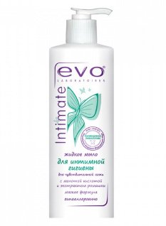Evo Intimate je najbolje rješenje za suhoću u intimnom području. Namijenjen je ženama s osjetljivom kožom. Formula sadrži sastojke za održavanje zdrave sluznice, dok mliječna kiselina zadržava svoj prirodni pH. Tekući sapun daje osjećaj ugode i čistoće, učinak je dovoljan za cijeli dan. Prema proizvođaču, lijek preporučuju ginekolozi. Formula je dobrovoljno testirana od strane SPC CosmoProdTest, a pratili su je stručnjaci FSBI SRI MT.