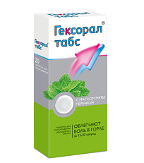 Geksoral Tabs kombinira anestetik s klorheksidinom, ali umjesto toga koristi lidokain benzokain. Formula je nadopunjena uljem paprene metvice i mentolom, koji odmah pružaju olakšanje. Alat ima snažan analgetski učinak, brzo uklanja upalu. Klorheksidin uništava bakterije, iako se ne može usporediti s lijekovima koji su posebno dizajnirani za tu svrhu. Benzokain počinje djelovati u roku od nekoliko sekundi, ali olakšava bol u kratkom vremenu.