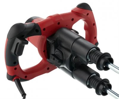 Model je najbrži i najsnažniji mikser u našoj ocjeni. Zahvaljujući povećanoj snazi električnog motora (1,6 kW) i rasporedu s dva vijka, daje performanse 2 puta veće od uređaja s 1 mlaznicom. Osim toga, mlaznice koje rotiraju u različitim smjerovima stabiliziraju položaj alata. Budući da teži više od 8 kg, ovo rješenje vam omogućuje da dugo držite uređaj u rukama i udobno. Važno je da motor radi zaštite od kontakta s elementima koji prenose struju ima dvostruku izolaciju.