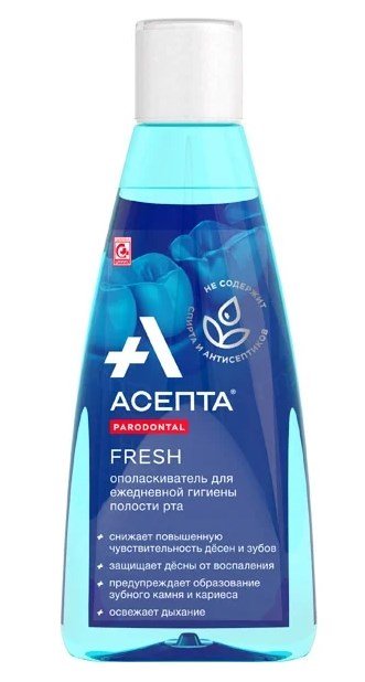 Proizvođač "Asepta" zauzeo je svoje mjesto u svim kategorijama ocjenjivanja. Ispiranje ovog brenda dodatno čisti usnu šupljinu, učinkovito smanjuje krvarenje i smanjuje upalu. Ovaj alat redovito preporučuju stomatolozi, kao dodatak svakodnevnoj njezi. Ispiranje "Asepta" sadrži ekstrakte korisnih ljekovitih biljaka. Ne samo da povoljno utječe na desni, nego i smanjuje osjetljivost zuba, štiti caklinu.