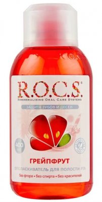Linija za ispiranje R.O.C.S. Uključuje proizvode različitih okusa, ali korisnici ga preferiraju "grejpfrut" zbog nježnog voćnog okusa. Nedostatak alkohola i oštrina, kao i dobar ukus učinili su ga omiljenim alatom, prikladnim za djecu. Ali budite oprezni, bebe mogu progutati ispiranje. S obzirom na terapijski učinak, uz redovitu uporabu, korisnici primjećuju kvalitativno poboljšanje zubnog mesa, krvarenja, upale i osjetljivosti.