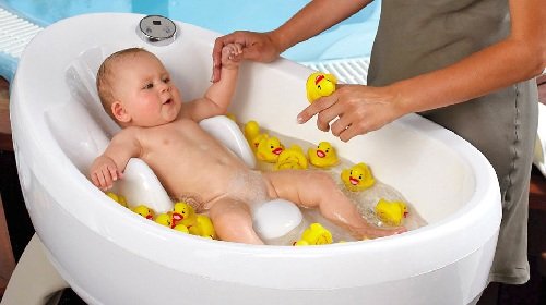 Zahvaljujući metalnim kukama koje su sigurno pričvršćene na bočne strane kupelji, model se može koristiti za higijenske postupke ne samo za novorođenčad, nego i za bebe do 6 mjeseci. Prikladno, prilikom stavljanja mrvica, površina proizvoda dobiva anatomski oblik, ostavljajući potpunu slobodu djelovanja kikirikija. Njegova glava zbog dobrih mogućnosti upijanja udaraca je uvijek iznad vode, a svojim ručki može doprijeti do omiljenih igračaka.
