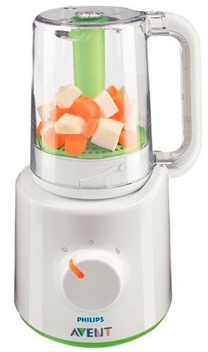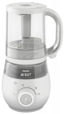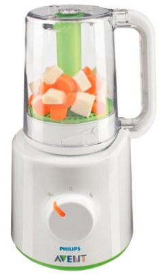Kompaktni dvostruki kotao - mješalica Beaba Babycook zauzima drugo mjesto u ocjeni najboljih modela slične klase. Zahvaljujući snazi od 350 W, jelo će se kuhati dovoljno brzo. Ugrađeni mikser omogućuje mljevenje proizvoda do željenog stanja. Košarica za paru izrađena je od prozirne plastike koja vam omogućuje kontrolu procesa kuhanja. Volumen posude je 1 l, što je dobar pokazatelj za tako kompaktan model.
