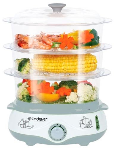Endever parobrod je najbolji troslojni uređaj u gospodarskom segmentu tržišta. Proračunski uređaj zaslužuje konkurenciju skupljim TOP nominiranima zbog izvanrednih performansi. Snažan (1.000 W) parni štednjak je mehanički upravljan, tj. Uključuje se i isključuje pomoću prekidača. Plastičnu kutiju nadopunjuju tri prozirne plastične košare.