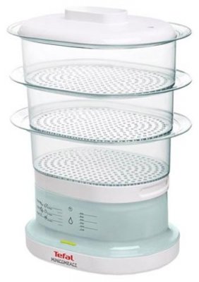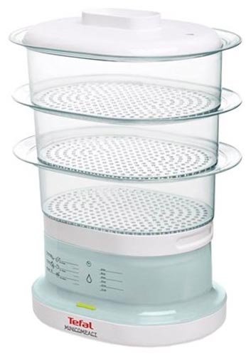Najprodavaniji parobrod, prema istraživanju korisnika - Tefal. Minikompaktni model postao je pravi prodajni hit. Troslojni uređaj snage 650 W prilično je prostran - ukupna zapremina je 7 litara. To je dovoljno za punu upotrebu obitelji od 3-4 osobe. Upravljačka jedinica je mehanička, tj. Dvostruki kotao se uključuje prekidačem, zaslon je odsutan. Karakteristike ukazuju na svjetlosnu indikaciju, kontrolu razine vode i automatsko isključivanje parobroda kada voda ispari.