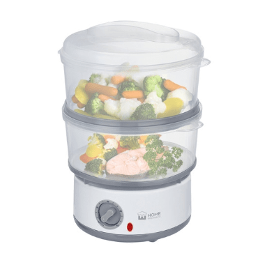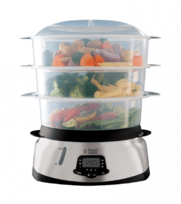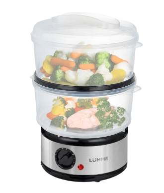 Umjesto funkcionalnog modela za jeftin uređaj. U tri razine možete staviti različite vrste proizvoda (meso i prilozi). Možete podesiti tajmer da se isključi (maksimalni sat), što uvelike pojednostavljuje kuhanje i štedi vrijeme. Paket uključuje zdjelu za rižu, svaki sloj ima udubljenja za kuhanje jaja. Zahvaljujući funkciji "Quick steam", možete brzo početi kuhati. Košare su izrađene od prozirne plastike kroz koju možete pratiti status proizvoda. Još jedna značajka modela je veliki spremnik za tekućine (1,2 litre).