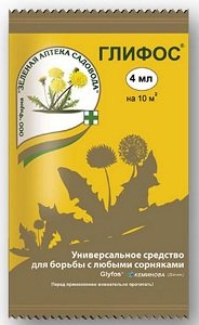 Za obradu korova iz vrtnih staza, sadnje tla, vegetacije grmlja stabala, ovaj mali paket (5 ml) preparata na bazi glifosata sasvim je dovoljan za vas. Aktivna je u borbi protiv 155 vrsta korova, tako da možete biti sigurni da će se hogweed, wheatgrass, bindweed, i puzavica u prošlosti, bez obzira na strukturu, vrstu tla, zadržati. Osim toga, pomoćnik u zemlji pokazuje dobar rezultat u različitim klimatskim uvjetima, budući da idealno tolerira širok raspon temperatura.