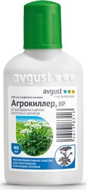 Lijek je napravljen na bazi glifosatne kiseline, koja se smatra jednom od moćnih komponenti za eliminaciju Hogweeda, Thistlea, Plantaina, poljskog liča, grmlja. Zbog visoke koncentracije sredstva, boca od 40 ml dovoljna je za obradu velikih površina. Čak i na čistim tlima, nepoželjne biljke se ne pojavljuju dugo vremena. Svestranost omogućuje korištenje "Agrokillera" iu vrtnim parcelama, te u staklenicima, cvjetnim gredicama, u pripremi travnjaka.