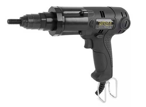 MESSER ERA-M4-10 električni navojni zakovica pokazuje najbolju vučnu silu od 750 kg / s, što mu omogućuje da se koristi za spajanje čak i najtrajnijih i masivnih materijala, kao što je čelični lim. Radovi se izvode korištenjem različitih vrsta zakovica s veličinama navoja od M4 do M10, ključevi za mijenjanje koji su uključeni u paket ovog uređaja. U setu su također predviđene učvrsne matice i vrhovi odgovarajućih veličina. Budući da se ovaj zakovica odlikuje visokim performansama, koristi se u profesionalnim radionicama i malim poduzećima.