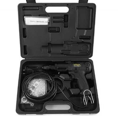Ovaj zaklepochnik može se nazvati univerzalnim, budući da uz ugradnju navojnih spojnih čavlića, lako se može izvesti spajanje limenih materijala s običnim zakovicama od mekog aluminija. Alat dolazi u praktičnoj kutiji s potrebnom opremom, što je dosta - tu su mlaznice od četiri standardne veličine, i navojne i standardne.