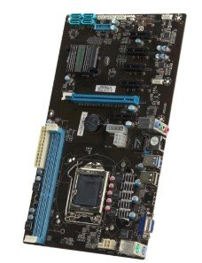 2 utora za DDR3 RAM, samo 4 faze napajanja i obilje USB utora ukazuju da je mjesto ove ploče samo u uredu za ispis dokumenata ili samo gledanje filmova. Od prednosti - postoje japanski kondenzatori. Postoje 4 SATA ekstenzije, što će omogućiti rudarima da priključe 6 video kartica na ploču odjednom.