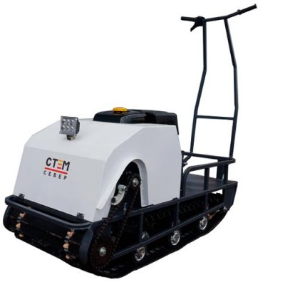 Motorni tornjevi STEM North C 500-15 - najbolji model za brze motore. Dobro osmišljen dizajn u kombinaciji sa snažnim (15 KS) četverotaktnim motorom omogućuje mu da dosegne brzinu do 60 km / h, što je apsolutni rekord među svim uređajima predstavljenim u ocjeni. Volumen spremnika za gorivo je 6,7 litara, a maksimalno dopuštena brzina protoka je 4,1 l / h, što vam omogućuje da putujete na dovoljno veliku udaljenost bez punjenja goriva. Gusjenica ima širinu od 500 mm, tako da ovo vozilo za vuču motocikla ima izvrsnu sposobnost skretanja.