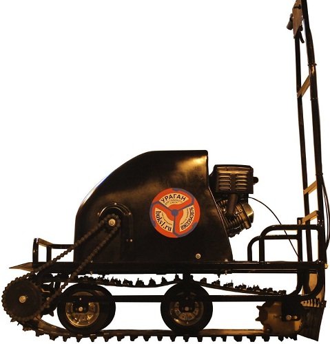 Najbolja kombinacija cijene i funkcionalnosti dostupna je u motornom tornju Uragan "Rastavljeno" s motorom od 7 litara. a. Njegova težina je 97 kg. U Motodogu možete brzo ukloniti pogon i volan. Tehnika pokreće benzinski jednocilindrični motor Lifan s prisilnim hlađenjem zraka. Ona troši samo 2,1 litara goriva po satu, u spremniku možete sipati 3,6 litara benzina. U prtljažniku možete nositi najviše 50 kg tereta, au prikolici motorni pas može nositi i do 350 kg. Maksimalna brzina jedinice dostiže 25 km / h. Široke gusjenice od 500 mm osiguravaju dobro prianjanje na snijegu, povećavajući upravljivost motorno-vučnog vozila.