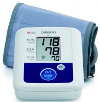 Automatski tonometar Omron - lider u ocjeni. Metoda dvostrukog mjerenja osigurava točnost dobivenih podataka koji se prikazuju na LCD zaslonu. Jedinstvena značajka modela je mogućnost uporabe pet manžeta različitih veličina. Tonometar pamti rezultate posljednjeg mjerenja, opremljenog s mogućnošću otkrivanja pokreta tijela. Funkcija određivanja aritmije obuhvaća promjene u brzini pulsa.