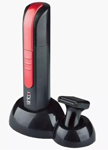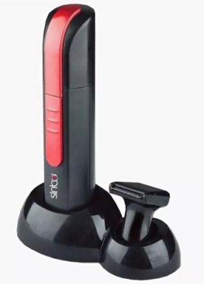 Trimer ima set visokokvalitetnih noževa od nehrđajućeg čelika, koji se suočava s rezanjem kose u ušima i nosu. Opremljen s dvije mlaznice i posebnim postoljem. Mala četka lako uklanja posječenu kosu. Rad uređaja osigurava AA baterija, koja traje dugo vremena. Elegantan crno-crveni dizajn pretvara običnog trimera u modni dodatak koji je pogodan za nošenje sa sobom svugdje. Stalak vam omogućuje da cijeli set držite pri ruci i da ne gubite male dijelove.